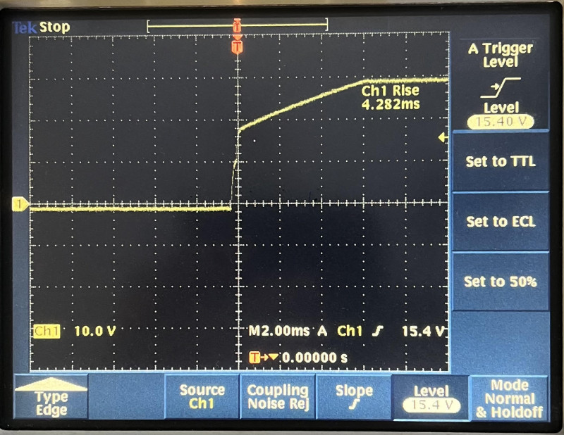 It is a very simple circuit, but with a load of 22 Ohm the ramp time is about 4ms.